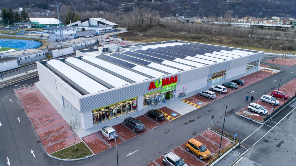 AUMAI Domodossola (VB) Descrizione Costruzione del nuovo punto vendita AUMAI, presso il Parco Commerciale “Il Bogna” a Domodossola. Superficie commerciale di circa 2.200 mq.Struttura portante in calcestruzzo armato prefabbricato e copertura a shed con pannelli solari incorporati e parte con tegoli piani. Certificazione energetica di Classe A3. Parcheggi e aree di manovra completano l’intervento. Tipologia […]