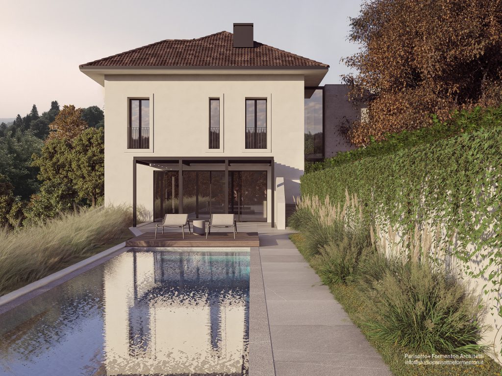 VILLA Arona (NO) Descrizione Ristrutturazione integrale di villa sviluppata su tre livelli fuori terra e un piano interrato, oltre alla dependance disposta su due piani. Il progetto include la sistemazione delle aree esterne con l’inserimento di una piscina integrata nel parco privato. Tipologia Ville Luogo Arona (NO) Periodo In corso